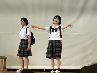 発表順は最後の6番目。他校の素晴らしいスキットの表現を見ながら、緊張してはいましたが悔いのないよう自分たちの力を出し切ろう!という決意の姿がありました。学校でのリハーサルの時より数倍声も大きく、演技力もアップしており、堂々と英語で表現してくれました。終わった後、拍手をしながら英語科の先生方が涙しているのにも感動しました。一番印象に残ったのは、ステージで思い切り自分の力を発揮することができたみんなの満足そうな笑顔でした!