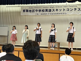 24日(土)仲西中学校体育館において、令和5年度那覇地区英語スキットコンテストの第2ラウンドが開催されました。第1ラウンドのビデオ審査を通過した代表6校による発表が行われました。