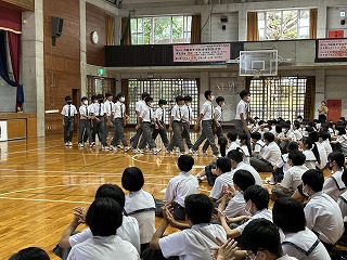 本日の朝会は、この夏県大会に出場する選手の皆さんの激励会でした。