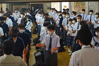始業式が終わると、2学年は学年フロア、3学年は体育館で学年開きを行いました。