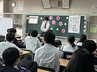 学級開きでは、それぞれのクラスで担任の先生との出会いの場面がありました。お互いの自己紹介をしたり、担任の先生について質問をしたり、また担任の先生の熱い想いを聞いたりなど、これから始まる1年間を素敵なものにしていきましょう!という大事な時間になりました。