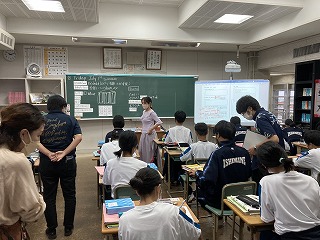 本日2校時、1年1組では来週の小中一貫合同授業研究会に向けての検証授業が行われていました。授業者は伊志嶺順子先生です。