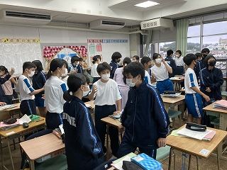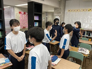 あいづちや共感、質問をする、など意識して、お互いの目を見て会話をしていました。表情や身振りも豊かで、とても積極的な姿に、英語科の先生方も褒めていました。