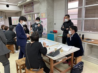石嶺中学校では、次年度総合的な学習の時間の改革に向けて、先生方の学習会を実施しました。寄宮中学校、浦西中学校、仲西中学校の先生方も参加して、今年度の振り返りをもとに課題を出し合い、プロジェクト型の探究活動をどのように進めていけばよいのか、ワークショップを実施しました。