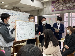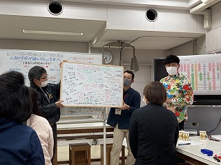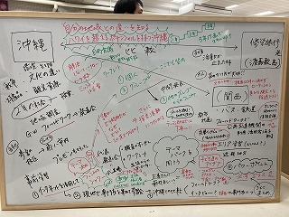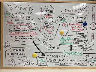 キャリアスマイルプロジェクトや教科探究極みコース、修学旅行とリンクさせた地域探究プロジェクトを実施した寄宮中学校の先生方、今年度計画を変更してキャリアスマイルプロジェクトやダイアモンドプロジェクトを実施した石嶺中学校、浦西中学校の先生方、地域の公民館でキャリアスマイルプロジェクトを実施している仲西中学校の先生が、初めて会ったにもかかわらず、1つのテーブルで熱く議論をかわしていました。