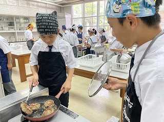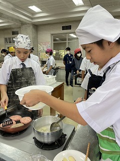 1年生の鮭のムニエルの実習に続き、2回目はハンバーグ。