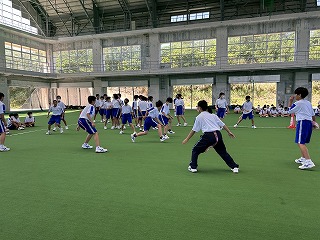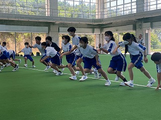 1年生は見晴らしのいい場所で記念撮影をして、開会式にのぞみました。学年委員さんが選手宣誓やゲームの説明をした後、学級対抗「しっぽ取りゲーム」が始まると、敵に背中を見せないように逃げたり、はさみうちをしたり、様々なかけひきで多くのしっぽを取ったほうが勝つという総当たり戦をしました。五色綱引きでの猛ダッシュの様子からも1年生の元気の良さが伝わりますね!