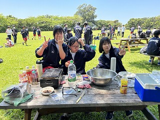 1年生は恩納村の赤間運動公園、2年生は石川青少年の家、3年生は糸満青少年の家で、みんなでレクや食事づくりを楽しみました。