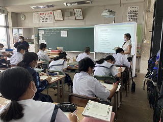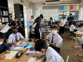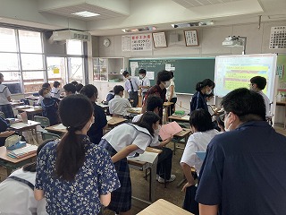 本日5校時は、石嶺中、石嶺小、城東小3校の先生方が合同で行う授業研究会でした。