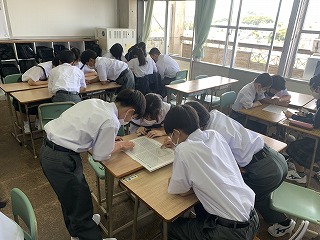 1年1組の教室をのぞくと、みんなが近づいて何かしています。