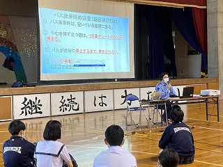生徒一人一人が自分の身に置き換えて、実際にどうしたら事故から身を守れるのか考えるような講話でした。