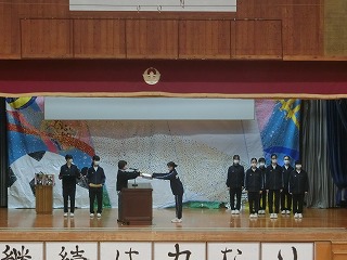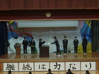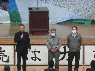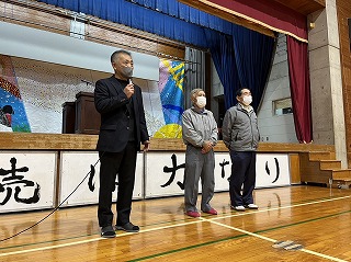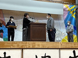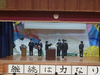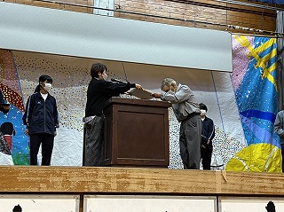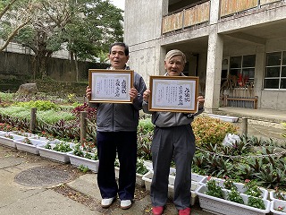 また、校内を整備し校庭の緑化に環境ボランティアとして貢献してくださった地域の大城貞彦さん、上江洲武夫さんには学校として感謝状を授与しました。体育館前がとてもきれいになり、全校生徒で感謝の気持ちを伝えることができました。大城さん、上江洲さんほんとうにありがとうございます!