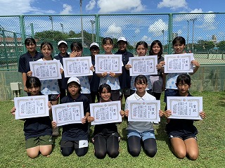 22日(土)より、奥武山庭球場では男女硬式テニスの団体戦、個人戦が行われています。本校女子硬式テニス部は団体戦で決勝まで勝ち進みました。対戦相手は石田中学校です。フルセットまで持ち込みましたが惜しくも敗れて準優勝という結果でした。