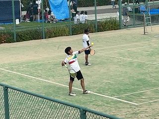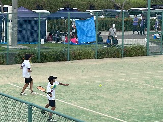 また、同時刻に個人戦男子ダブルスに出場した玉城・宮道ペアはあげな中と対戦しました。落ち着いた試合を展開しましたが惜しくも敗退しました。会場にいる応援の皆さんも精いっぱいの健闘をたたえていました。選手の皆さん、応援の皆さんお疲れ様でした。女子は引き続き個人戦も頑張ってください!