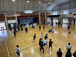 ボールのように思い切り投げるとうまく飛ばず、コツがいるみたいです。当たっても痛くないようなので年齢、性別問わず楽しめるレクのようでした。最後の思い出作り、あちこちで楽しそうな歓声がおこっていました。
