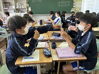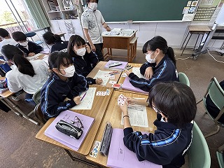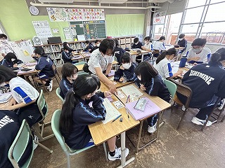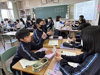 表を仕上げながら、正負の数を足すことができるようになっていました。間違いに気づいたら友達と教え合う場面もあちこちで見られました。元気な1年4組さん、ますます元気に頑張っていました。