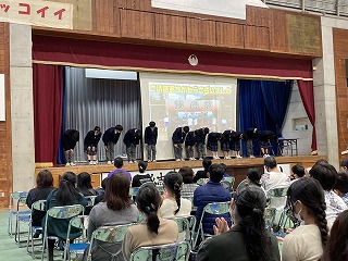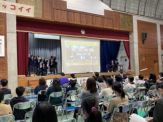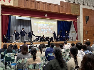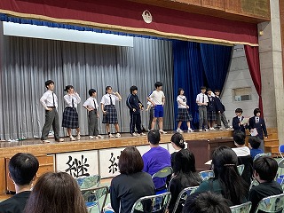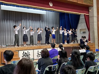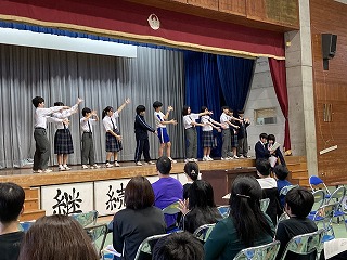 最後はモデル全員が登場してのポーズ!会場にお別れをして幕を閉じました。食い入るように見ていてくれた6年生の皆さんでした。楽しんでもらえてミッションクリア!やり切って満足げな生徒会総務の皆さん!よく頑張りましたね!6年生の皆さんの不安を吹き飛ばして、入学を楽しみにしてくれたら嬉しいですね!