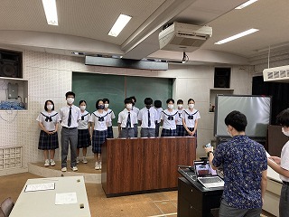 本日朝会において、オンラインで県大会に向けた選手激励会が行われました。石嶺中学校を代表して、12の部活動が県大会・コンクールに出場します。野球部、サッカー部、女子バレー部、男子バドミントン部、女子バドミントン部、男子テニス部、女子テニス部、ソフトテニス部、男子卓球部、女子卓球部、吹奏楽部、合唱部の皆さんです。