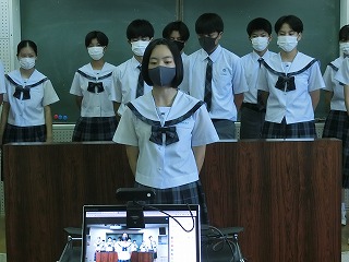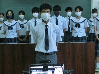 生徒代表あいさつでは、生徒会総務の大城陽汰さんから「全力で頑張ってください、全校生徒で応援しています!」と激励のあいさつがありました。