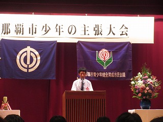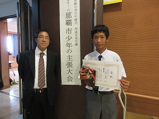 昨日、牧志ほしぞら公民館において、那覇市少年の主張大会が開催されました。本校から3年玉城慶悟さんが代表で出場しました。