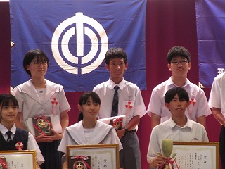 ホールでの発表はとても緊張したかと思いますが、写真からもわかるように堂々と発表してくれた様子がうかがえます!演題は「伝統文化を守るって必要?」です。自身が地域の伝統文化である旗頭を経験したからこそ主張できる内容でした。結果は優良賞をいただきました。国語科の宮城安博先生、ご指導ありがとうございました。慶悟さん、よく頑張りました!