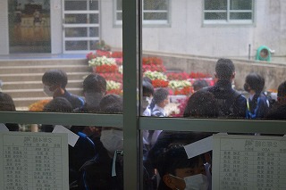 自分が何組になるのか、友達は誰と一緒なのか、生徒の皆さんがドキドキしながら自分の名前を探していました。