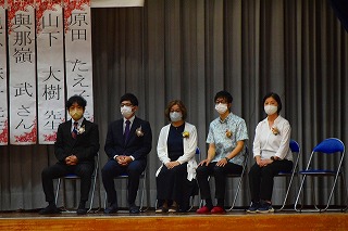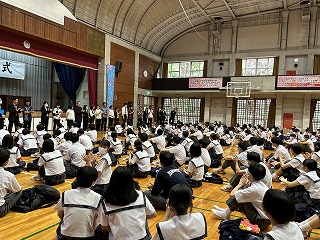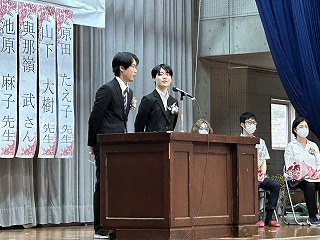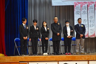 生徒会の皆さんから歓迎の意味を込め花束贈呈が行われました。