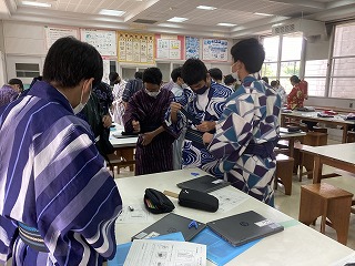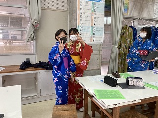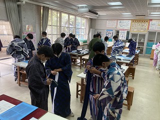 ゆかたを着ていると歩き方も変わります。帯結びは難しかったですが、和の文化にふれる貴重な体験でした。1組から3組はまた秋に実施予定です!