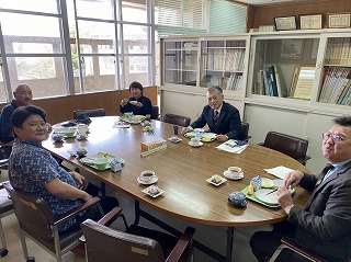 教頭先生から評議員の皆さんに今年度の石嶺中学校の教育活動の様子、生徒の活躍、グランドデザイン評価の考察など説明を行い、私からは次年度のグランドデザインとキャリア教育コンセプトについてお話させてもらいました。