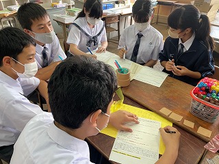1学年では、正副級長からなる学年委員さんたちが、朝と放課後の時間を活用してみんなが仲良くなるレクの企画を話し合ったり準備を進めたりしています。題して「絆プロジェクト」。