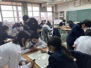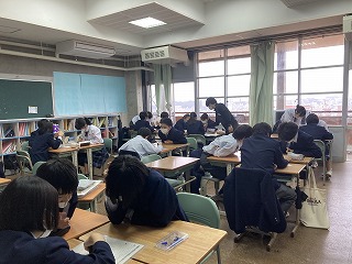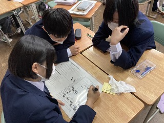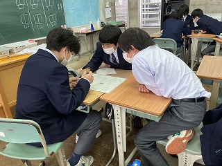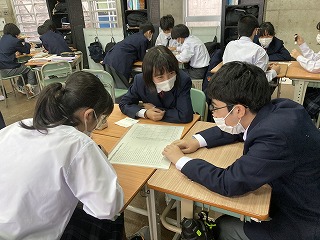1年5組の数学の授業が2時間あり、そのうちの1時間は、様々な条件から答えを導き出す問題解決型のゲームを通して、楽しいグループ活動が行われました。