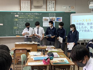 この授業を、もう少し時間をかけることができたら、国語の力を発揮してニュース原稿を仕上げる教科横断的な活動にもつながる授業でした。興味をひくタイトルをつけ、キャスターになって「12月3日、ブッシュ大統領とゴルバチョフ書記長がそろって『マルタ会談』に出席しました!」のように番組形式で実際にその会談で話し合われた内容をリアルに発表するなど、どう伝えるのが効果的かを考えることで、社会的な見方・考え方が広がっていくのかもしれません。私たちの授業改善は続きます!
