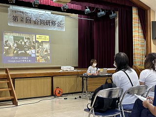 本日午後は石嶺プラザにおいて、石嶺中学校グループ3校合同の第2回研修会が行われました。石嶺中、石嶺小、城東小の全職員で、各学校の校内研究の取り組みの進捗状況の共有と児童生徒支援の在り方の確認、31日に控えている石嶺のまちづくりワークショップに向けたファシリテーション研修を行いました。