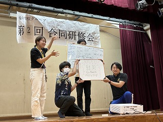3校の先生方が、それぞれの部会で交流しながら学びを深めました。授業研究部会では、これまでの校内研究の取り組みの様子を研究主任がプレゼンで発表し情報交換しました。児童生徒支援部会では、不登校対策で石嶺公民館を活用した学習会の取り組みやふれあい交流会について、また中学校で行われる通信制高校の進路学習会への小学校の先生方の参加などについて話し合いが行われました。交流推進部会では、31日(月)に実施予定の「地域とともに考えるまちづくりワークショップ」に向けたファシリテーション研修を行いました。本日のお題は「全国ネットに取り上げられるような児童会・生徒会活動を考えよう!」にチャレンジし、見事ロールプレイでの発表まで行ってくれました。今年度は石嶺小、城東小、石嶺中の先生方の距離が縮まり、共にお互いの取り組みをリスペクトしながら小中一貫教育が推進されている感じがしました。コーディネーターの松本先生が3校をつないでくださっているおかげだと思います。いつもありがとうございます!