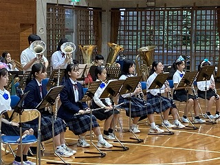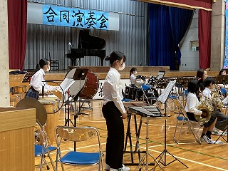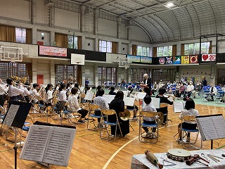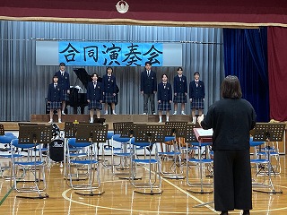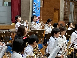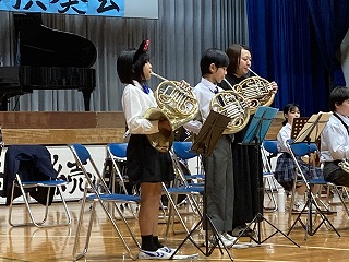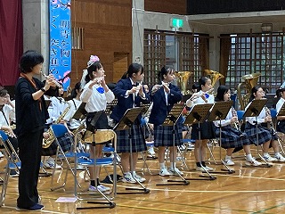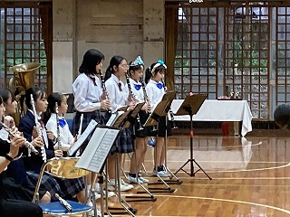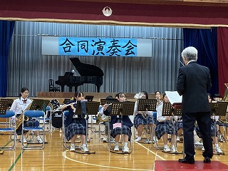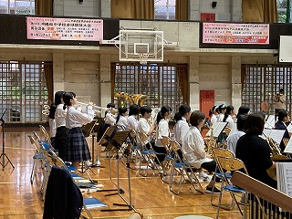 21日(火)の15時より、本校体育館において、吹奏楽部、合唱部、城東小学校吹奏楽部の合同演奏会が開催されました。