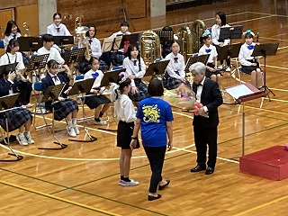 石嶺中、城東小の吹奏楽部を指導をしていただいている山元正造先生に花束贈呈がありました。いつも少人数の吹奏楽部の演奏とはまた違った迫力のある演奏会となりました。多くの保護者の皆様にご来場いただいて素晴らしい演奏会ができたことに感謝いたします!吹奏楽部の皆さん、合唱部の皆さん、素晴らしかったです!!!