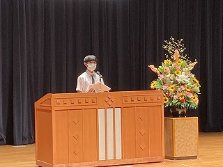 表彰式の後、発表の部では代表で喜村大成さんが堂々と作文を披露しました。題名は「家族で過ごすことの大切さ」です。真の意味での心の支えは家族であること、家族そろっての時間を大切にしていきたいと訴え、会場からは大きな拍手をいただきました。このたび大きな賞を2人が受賞したこと、とても誇らしく思います!おめでとうございます!