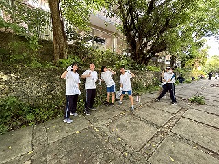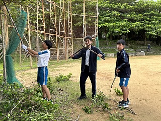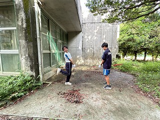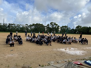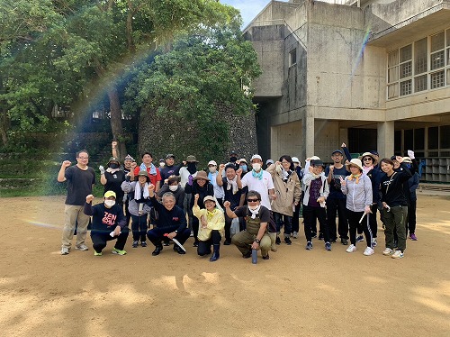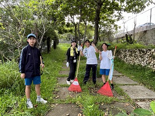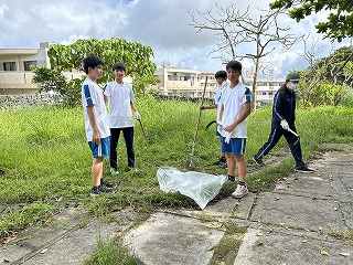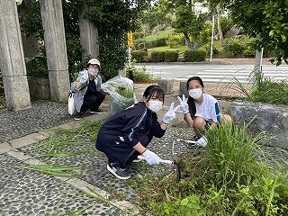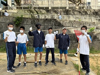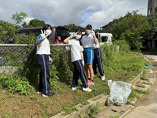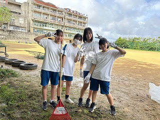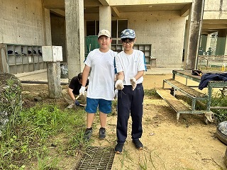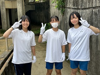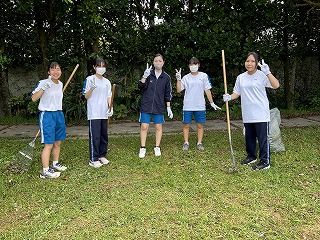 とても蒸し暑い中での作業になりました。みんなの頑張りのおかげで石嶺中学校の環境もきれいになりました!