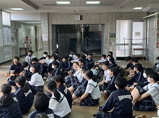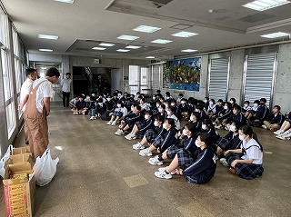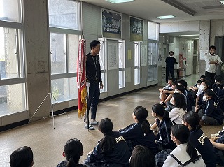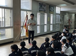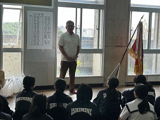 本日放課後、那覇ハーリー大会に参加した選手団の解団式が行われました。総合監督の伊禮達郎先生がみんなの頑張りをたたえました。