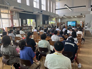 興味のある生徒、保護者、本校の先生方とあわせて、石嶺小学校、城東小学校の先生方も参加しました。