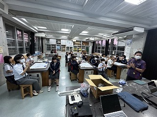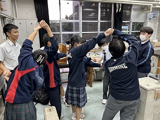 12月9日・10日にアイムユニバースてだこホールにて開催される全国中学校総合文化祭の生徒交流会を、本校生徒会と浦西中生徒会が進行します。全国から集った舞台発表参加者との交流会の企画づくりを行いました。ホワイトボードを活用してそれぞれの学校で考えてきたレクのアイディアを紹介したり組み立てたり、実際にやってみたりしながら、まずは両校の生徒会同士が仲良くなっていました。今週もまたお互いの学校を行き来して準備に取り掛かるとのこと。忙しい時期ではありますが、全国から沖縄に来てくれた中学生同士が共に仲良くなって沖縄の魅力に気づいてくれるよう、しっかりと準備していきます。