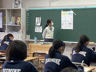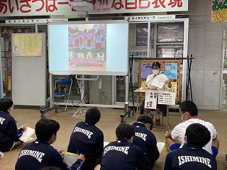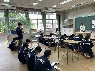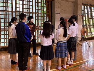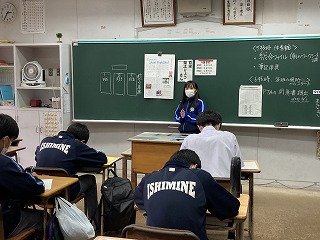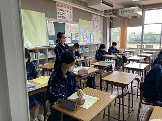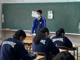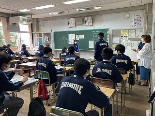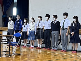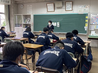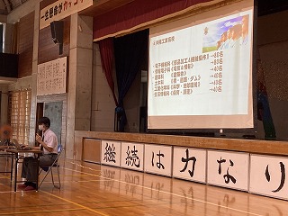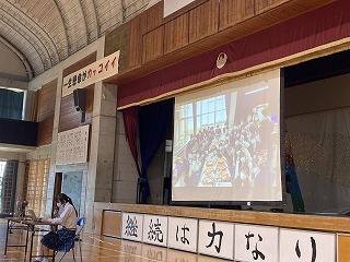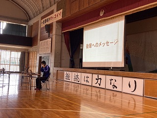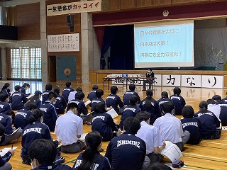 3年生は体育館で、1,2年生はオンラインで参加しました。