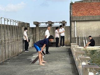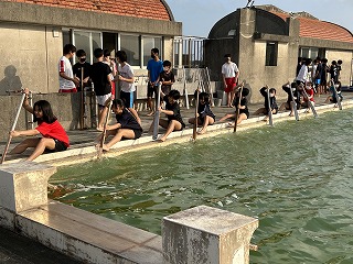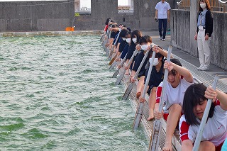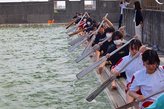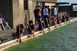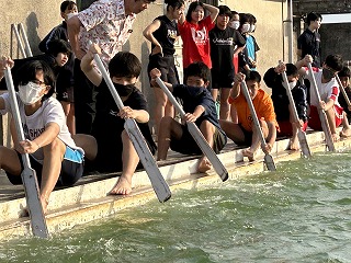 「何トンもある重たい船が動き出すまでに、何度も漕がないといけない。そのときに櫂がバラバラになっていたら進まないから、最初の1回目から揃えることが大事」と教頭先生が声かけてくれました。今日のチャレンジは最初から合わせること!