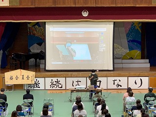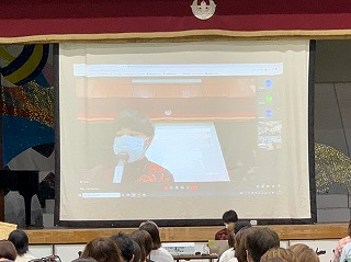 保護者の皆様は体育館で、生徒の皆さんは教室でオンラインでの参加になりました。