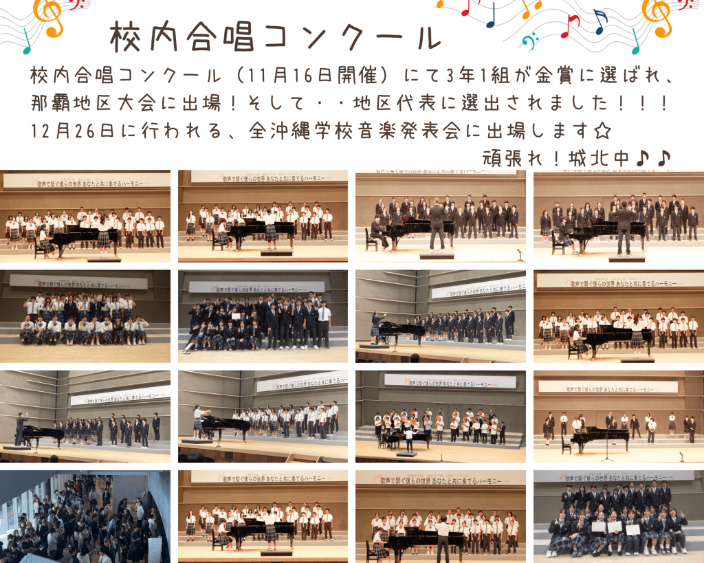 <城北中学校の情報> ★R7城北中学校の教育グランドデザイン⇨R7版 城北中学校のグランドデザイン図.pdf ★学校の取り組みに関する資料 ⇒ 令和7年度学校の取り組みに関する資料.pdf ★R7学校いじめ防止基本方針⇨令和7年度 那覇市立城北中学校 学校いじめ防止基本方針.pdf ★年間行事計画⇨R7年間行事計画表.pdf ★月予定表⇨R7 11月行事予定表.pdf