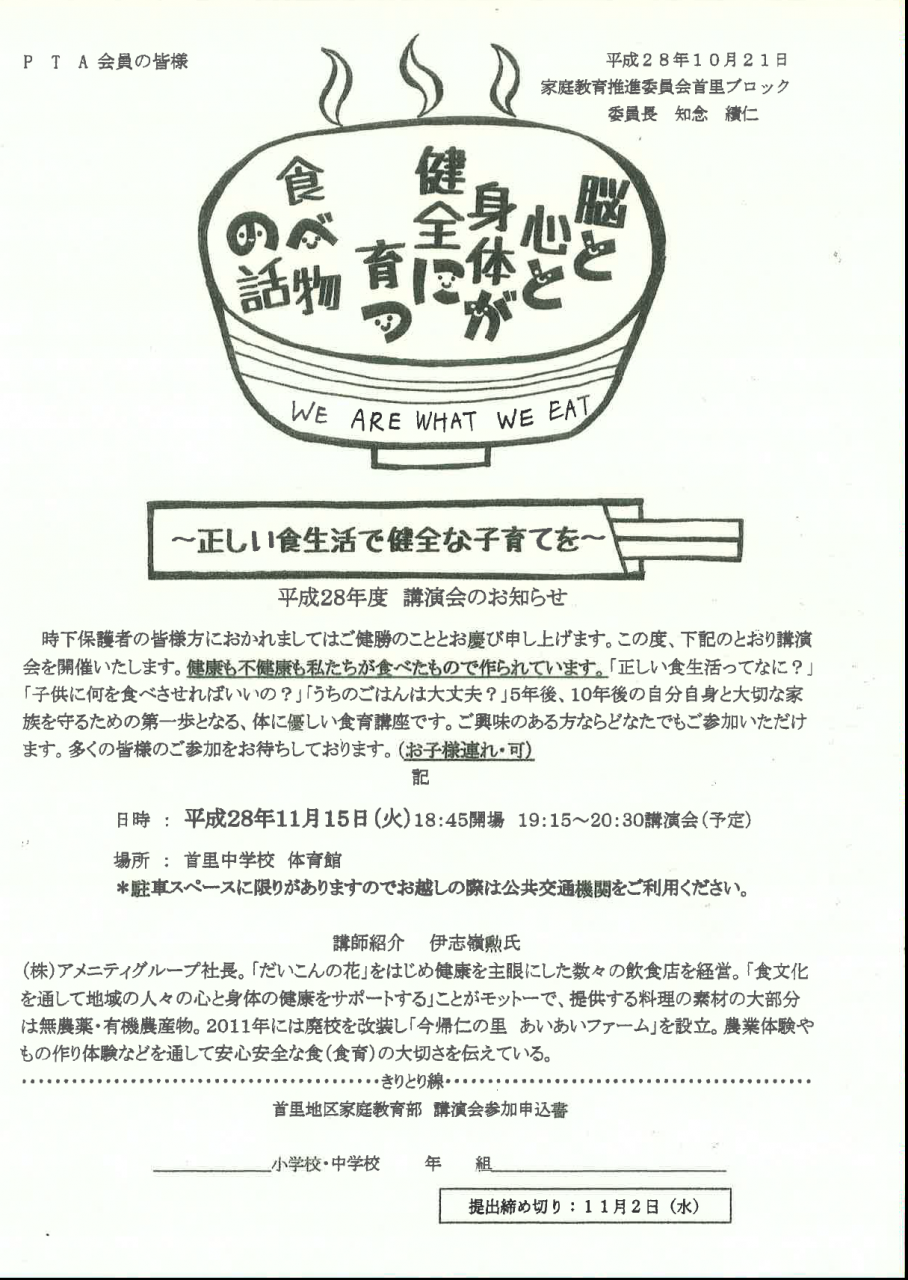 家庭教育推進委員会首里ブロックより、講演会のお知らせです。