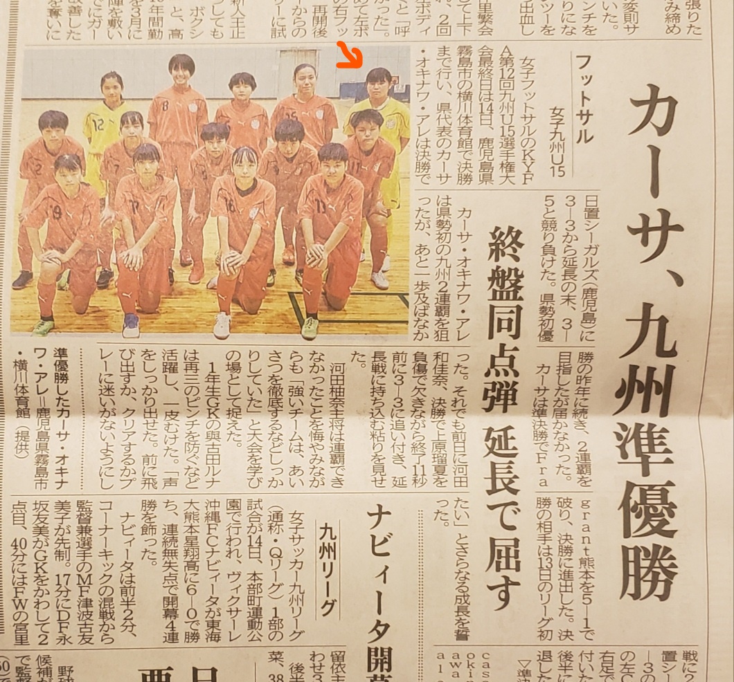 本校1年與古田ルナさん所属のカーサ・オキナワ・アレが準優勝しました(後列右端)