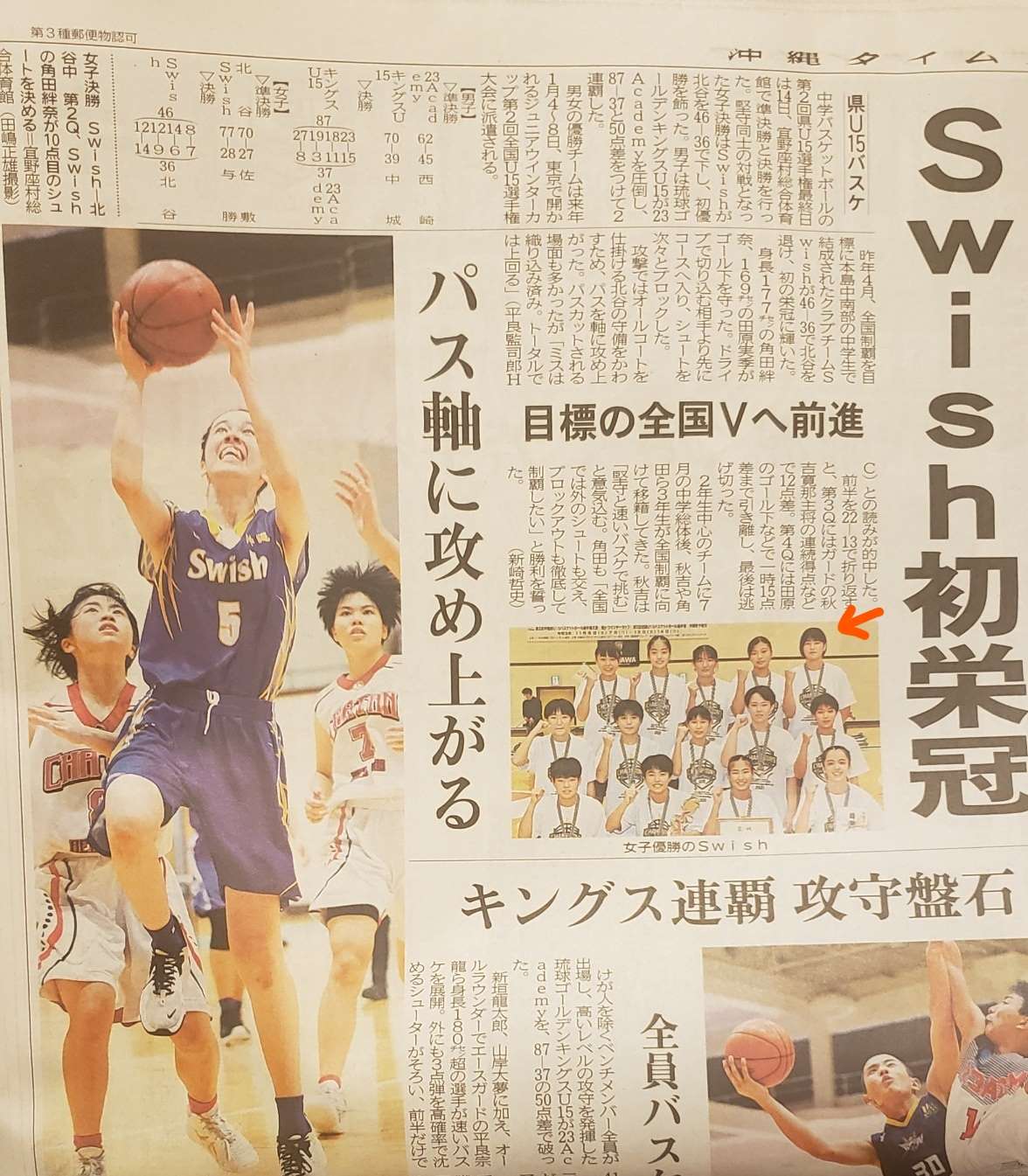 本校2年生盛みくさん所属のSwishが優勝しました。(後列右端)