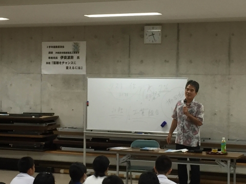 事務局長の伊良波 勲様が「困難をチャンスに変えるには」という演題で話をしてくれました。