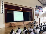 6/6(木)の朝会~1校時に掛けて、平和学習講演会を実施しました。